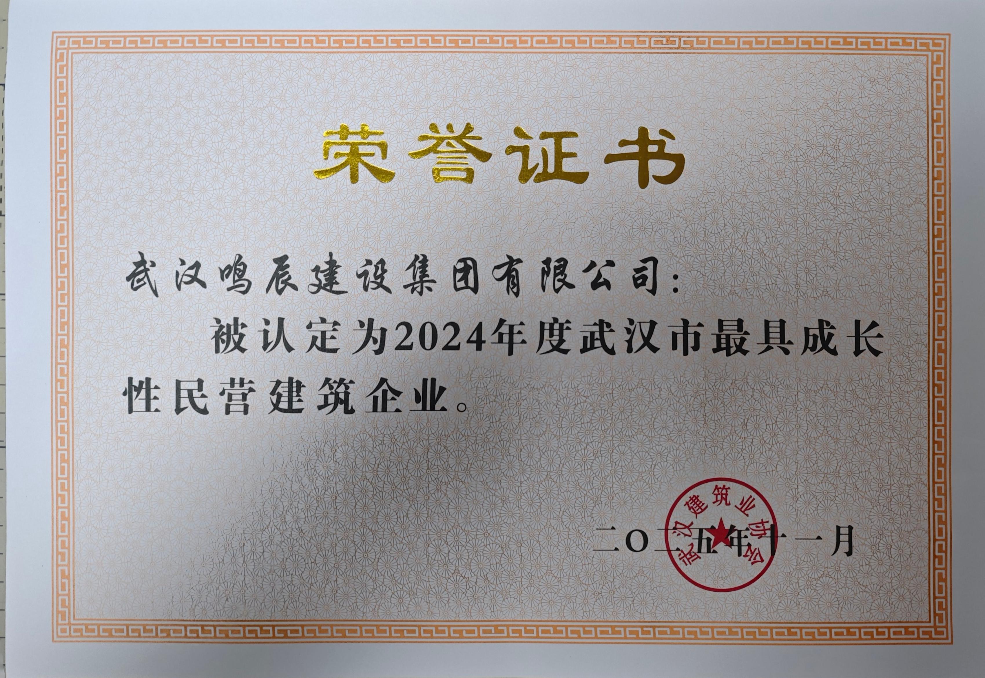 2024年度武汉市最具成长性民营建筑企业